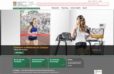 The Centre for Sports and Exercise administers all the sports facilities of the University. These facilities include the Flora Ho and Lindsay Ride Sports Centres (indoor sports gymnasia), the Stanley Smith Swimming Pool, the Stanley Ho Sports Centre (outdoor sports and athletics stadium), the Henry Fok Swimming Pool and tennis courts at High West, Eliot Filter Beds and Robert Black College.